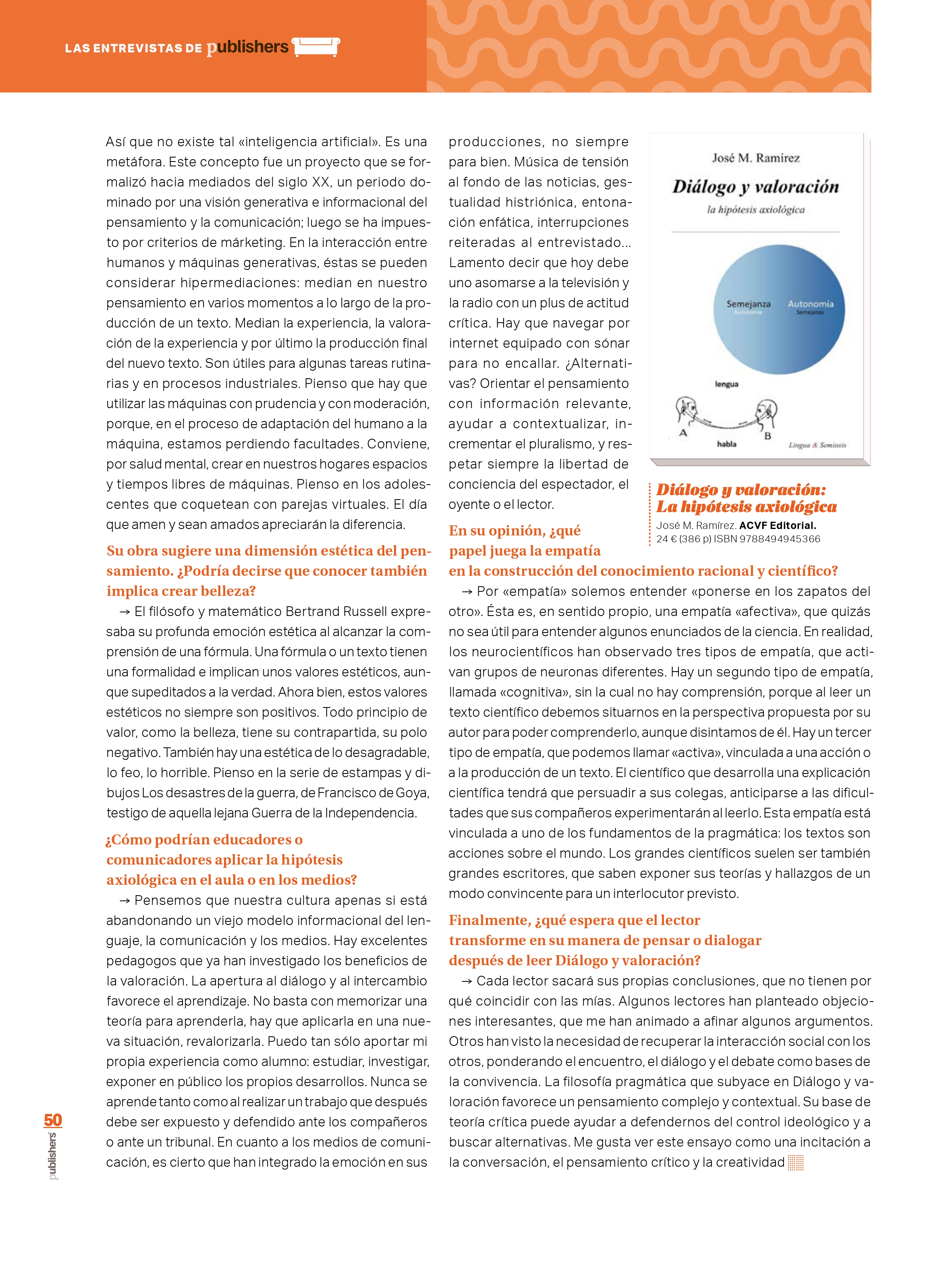 «Diálogo, valores e ideología: filosofía del lenguaje en la nueva obra de José M. Ramírez», nota de prensa en Agencia EFE.